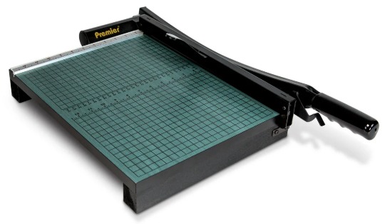 Fully-hardened high-carbon steel blades of the Martin Yale Premier Cutter allow precision-angled cutting of up to 30 sheets. In addition, it can handle other materials, including cardboard, matte board, textile, tissue, and film. The manual clamp of the paper cutter securely holds stacks in place for precise cutting, while the heavy-duty 3/4″ thick wood base provides a sturdy foundation for reliable and safe operation.