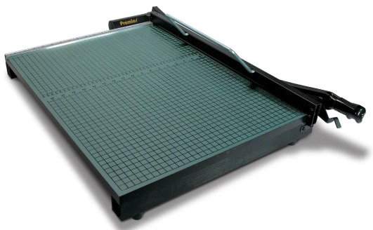 The Premier guillotine paper cutter is designed with all the safety features needed for comfortable and safe trimming of paper. The heavy duty paper trimmer is built with an automatic blade latch that locks with every cut motion, a torsion spring that keeps the cutting knife from accidentally falling, and a finger guard that covers the whole knife length. The trimmer also features non-skid rubber feet to prevent movement for added stability.